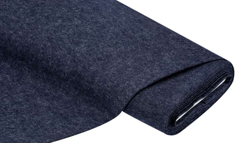 Bastelfilz, Farbe: marine-melange, Stärke: 1,5 mm, Breite: 95 cm, Gewicht: ca. 200 g/m². Material: 80 % Polyester, 20 % Viskose.