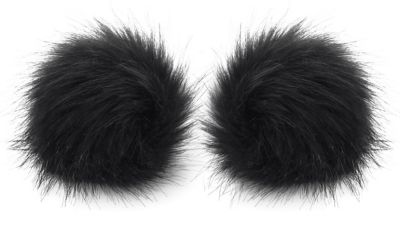 buttinette Fellimitat-Bommel, mit elastischer Schlaufe zum Annähen, Farbe: schwarz, Inhalt: 2 Stück, Größe: 12 cm Ø. Material: 100 % Polyacryl.
