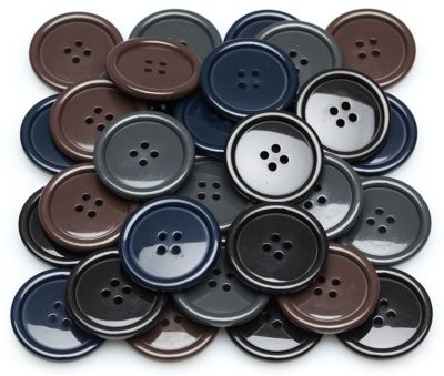 buttinette Jacken- und Mantelknöpfe, Größe: 28 mm Ø, Farbe: schwarz, grau, braun und marine, Inhalt: 32 Stück (pro Farbe 8 Stück), Material: Kunststoff.