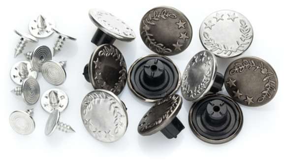 buttinette Jeansknöpfe mit Lorbeerkranz. Diese Knöpfe sind ideal für Jeanshosen und -jacken geeignet. Farbe: silber, altsilber, Größe: 17 mm Ø, Inhalt: 20 Stück (pro Farbe 10 Stück). Material: Messing.