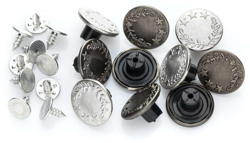 Mit den buttinette Jeansknöpfen bekommt Ihre selbstgenähte Jeans-Mode ein authentisches Finishing! Doch nicht nur für selbstgenähte Jeanshosen, -röcke und -jacken sind die Jeansknöpfe ideal, sondern auch als Ersatzknöpfe an gekauften Jeans. Das Anbringen der Knöpfe geht einfach und schnell: den Dorn durch den Stoff drücken, das Oberteil aufsetzen und mit einem Hammer vorsichtig auf das untere Teil schlagen.