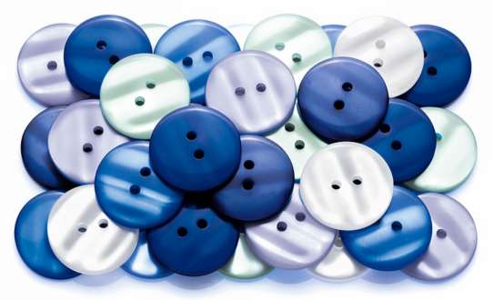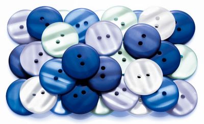 buttinette Mode-Knöpfe, schimmernd, Farben: Blautöne, Größe: 22 mm Ø, Inhalt: 40 Stück (6 verschiedene Farben à 6 – 7 Stück). Material: Kunststoff.