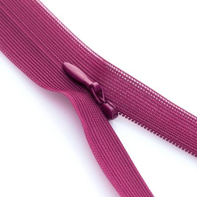 buttinette nahtverdeckter Reißverschluss, nicht teilbar, Farbe: beere, Breite: 4,2 mm, Band 25 mm. Material: Band aus 100 % Polyester, Spirale aus Kunststoff, Schieber aus Metall.