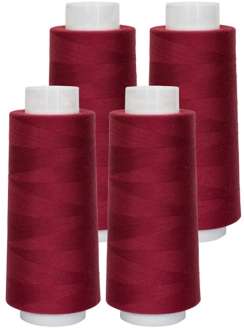 buttinette Overlockgarn im 4er-Pack, Stärke 120, 2500m-Spulen, weinrot