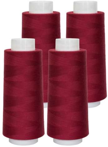 buttinette Overlockgarn im Sparpaket, Farbe: weinrot, Standardstärke: 120, Nadelstärke: 70 - 100. Inhalt: 4 Spulen, 2500 m pro Spule. Material: 100 % Polyester.