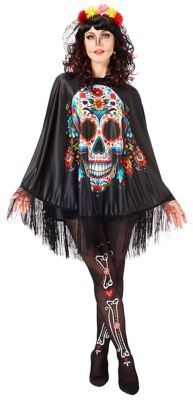 - Besonderheiten: Poncho mit Fransen am unteren Rand, mit Totenkopf- und Blumenaufdruck