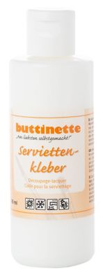 buttinette Serviettenkleber, wetterfester Kleber und Lack auf Wasserbasis, für sämtliche Untergründe geeignet, wie z. B. Holz, Gips, Papier, Styropor, Metall etc.