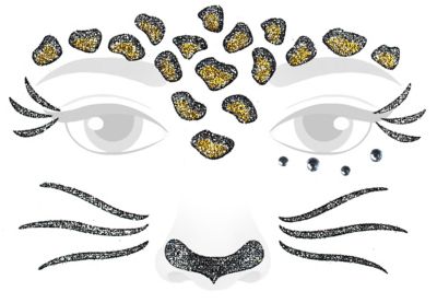 - Besonderheiten: glitzerndes Face-Art-Tattoo "Leopard" mit Strasssteinchen