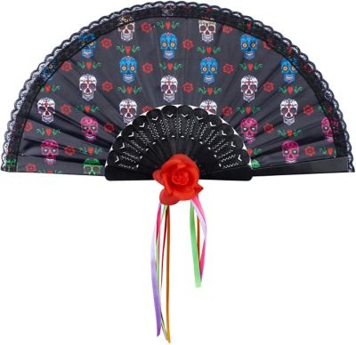 Unser neuer Halloween Trend in diesem Jahr ist eindeutig alles rund um das Motto Tag der Toten – oder auf Spanisch: Día de los muertos! Aber was ist eigentlich dieser Tag der Toten? – Der Día de los muertos ist einer der wichtigsten mexikanischen Feiertage, an dem man traditionell den Verstorbenen gedenkt. Gefeiert wird vom 31. Oktober bis zum 2. November – also genau an Halloween. Den Tag der Toten feiert man natürlich kostümiert: Die Damen tragen herrschaftliche Kleider im La Catrina-Stil und schmücken ihr Haar mit Blüten in herrlich kräftigen Farben, die Herren greifen zum Skelett Kostüm. Eines darf am Tag der Toten aber unter keinen Umständen fehlen: Totenköpfe in allen Farben und Formen – egal ob am Armband, als Maske oder Make-Up. Sogar Süßigkeiten in Form von Totenköpfen, genannt Sugar Skull bzw. Calavera de Dulce, gibt es am Tag der Toten. Lassen auch Sie sich vom Trendthema Día de los muertos inspirieren und schlüpfen Sie für die Halloween- oder Faschingsparty in ein farbenprächtiges Tag der Toten Kostüm. Dazu passen perfekt Accessoires mit Totenkopf-Design wie dieser tolle Fächer. Jetzt nur noch dem Halloween Kostüm mit einem fantasievollen Make-Up à la Sugar Skull den letzten Schliff verleihen und Sie sind startklar für eine aufregende mexikanische Tag der Toten Party.