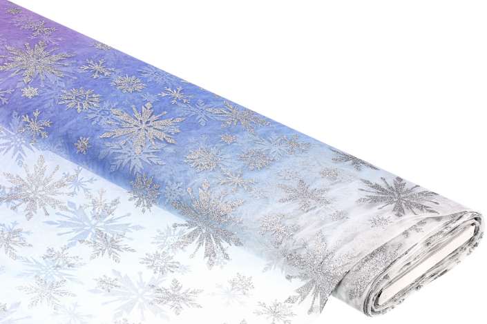 Mit diesem hochwertigen Feintüll lassen Sie es schneien! Haben Sie kleine oder große Eisprinzessinnen im Familien- oder Bekanntenkreis? Dann machen Sie ihnen doch mit dem glitzernden Schneeflocken-Stoff mit traumhaftem Farbverlauf in Hellblau eine Freude! Im Nu ist daraus ein atemberaubendes Eisprinzessinnen-Kostüm oder ein schöner Läufer für die weihnachtliche Tafel oder eine Mottoparty genäht! Auch zur Dekoration von Eispalästen (Kinderzimmern) ist der Stoff bestens geeignet. Gleich bestellen und winterliches Flair hautnah erleben!