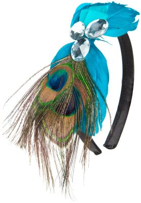 - Besonderheiten: edler Haarreif mit Satin-Überzug, verziert mit Federn und Schmucksteinen