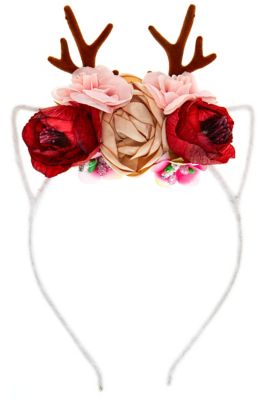 - Besonderheiten: Haarreif mit Ohren, verschiedenen Stoffrosen und Geweih