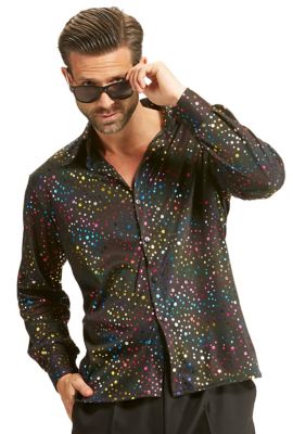 Alle Spots auf Sie: Mit diesem coolen Hemd machen Sie den Disko-Scheinwerfern ernsthafte Konkurrenz. Die bunten Punkte reflektieren das Licht und sorgen so für aufregende Highlights. Ob zum Schlagerstar-Outfit oder einfach nur ganz lässig zur Jeans – dieses Disko-Hemd ist ein absoluter Eyecatcher.