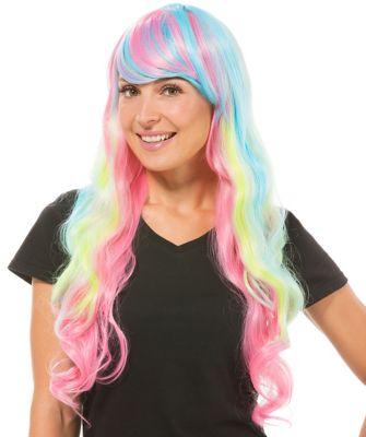 Langhaarperücke "Candy" – ein wahrer Regenbogen-Traum, finden Sie nicht auch? Die Pastelltöne harmonieren richtig gut mit langen Haaren, Pony und Locken.