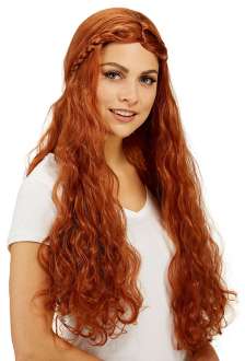 Sie möchten Ihr Kostüm mit einer langen Lockenpracht vervollständigen, haben aber selbst nur kurzes Haar? Abhilfe schafft diese Langhaar-Perücke, die mit den zwei geflochtenen Zöpfen noch ein weiteres Hingucker-Highlight besitzt. Die Lockenperücke passt bestens zu Kostümen wie Burgfräulein, Mittelalter-Magd, Prinzessin oder auch zu Bogenschützinnen. Wenn Sie möchten, können Sie die kupferfarbene Perücke auch noch anderweitig frisieren und die Haare beispielsweise hochstecken – werden Sie ruhig kreativ!