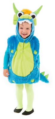 - Besonderheiten: aufwendig genähtes Monsterkostüm mit aufgenähten grünen Punkten, Stacheln und angenähter Kapuze inkl. Hörnern, Augen, Ohren, Nase und Zähnen, ärmellos, unten mit Gummizug, hinten mit abnehmbarem Schwanz