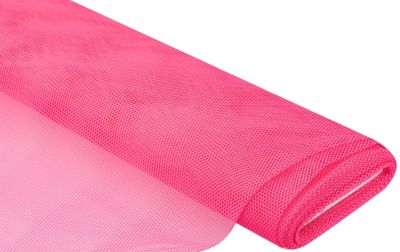 Netzgewebe "Mesh", Farbe: neonpink, Löchergröße: 4 mm, Breite: 145 cm, Gewicht: ca. 60 g/m². Material: 100 % Polyester.