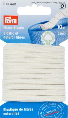 Prym Gold-Zack Gummiband "Natur-Elastic" mit Baumwolle, Farbe: rohweiß, Breite: 5 mm, Länge: 10 m. Material: 68 % Baumwolle, 32 % Elastodien.