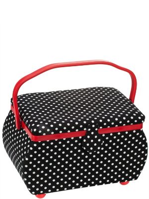 Bei diesem hübschen Nähkorb schlagen die Herzen von Handarbeits-Fans höher! Das fröhliche Tupfen-Design in Kombination mit Rot macht auf der Stelle gute Laune und Lust aufs Selbermachen. Der Nähkorb bietet dann auch jede Menge Raum für alles, was man zum Nähen braucht: Größere Dinge finden im geräumigen unteren Bereich ihren Platz, kleinere Teile sowie Ihre Schneiderschere in dem transparenten herausnehmbaren Kunststoffeinsatz. Zwei Einschubtaschen im Deckel können ebenfalls befüllt werden. Das im Deckel integrierte Nadelkissen macht Schluss mit herumfliegenden, schlecht auffindbaren Nadeln.