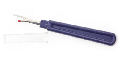 Prym Nahttrenner. Farbe: pflaumenblau, mit Kunststoffgriff und Schutzkappe, Länge: 13 cm.