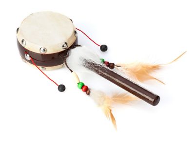 Schüttel-Trommel – mit dieser Indianertrommel peppen Sie Ihr Indianerkostüm auf und haben zudem ein tolles Rhythmusinstrument dabei!