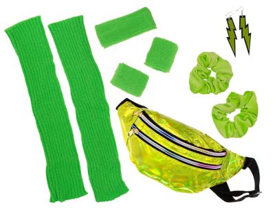 Set "80er" – mit diesem grellen Set in Neongrün sind Sie perfekt ausgestattet fürs 80s-Revival!