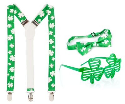 Set "St. Patrick's Day" – so schnell waren Sie noch nie verkleidet, stimmt’s? Einfach das Alltagsoutfit mit Hosenträgern, Fliege & Brille aufpeppen & los geht’s!