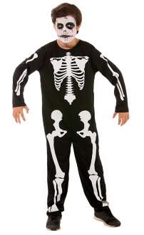 Ihr Kind ist zu einer Halloween-Party eingeladen und braucht noch eine passende Verkleidung? Dann ist unser Skelett-Kostüm genau das Richtige! Ein realistisch aussehender, schwarz-weißer Knochen-Aufdruck schmückt den coolen Skelett-Overall – perfekt für einen horrormäßigen Auftritt! Übrigens: Das Kostüm "Skelett" ist auch super für Fasching oder Karneval!