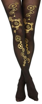 - Besonderheiten: Strumpfhose mit goldenem Zahnrad-Aufdruck