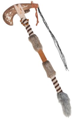 Tomahawk – ein tolles Accessoire für Ihr Indianerkostüm ist dieser fellbesetzte Holz-Tomahawk.