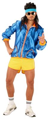Die 80er-Jahre waren ein sportliches Jahrzehnt. Nicht umsonst sind Trainingsklamotten DIE Kultteile aus dieser Zeit! Ihre Eltern haben ihre 80er-Trainingsanzüge leider nicht aufgehoben? Macht nichts! Hier gibt es Ersatz, mit dem Sie auf jeder 80er- oder Bad-Taste-Party garantiert einen Volltreffer landen! Die Kombination aus königsblauer Glanzjacke und knallgelben Shorts ist aber auch ein optisches Highlight! Also nichts wie ab in den Warenkorb mit diesem kultigen 80s-Kostüm, evtl. noch ein paar lustige Accessoires dazu aussuchen – und dann viel Spaß auf der Party!