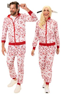 Mal einen etwas anderen Trainingsanzug gefällig? Dieser ist von der ganz besonders ausgefallenen Art: Blutspritzer über und über prädestinieren ihn fernab der reinen 80s-Assoziation für einen Schauder-Auftritt zu Halloween oder Fasching! Man könnte fast meinen, Sie arbeiten in der Halloween-Klinik und wohnen Grusel-Operationen à la Frankenstein bei; hier eine Armamputation, dort eine Horror-Geburt im Folterkeller. Die schlimmsten Szenarien spielen sich vor den inneren Augen der Menschen ab, wenn Sie Ihnen in Ihrem blutüberströmten Trainingsanzug begegnen. Als Horror-Kostüm geht der Zweiteiler also allemal durch!