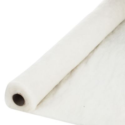 Volumenvlies mit Wolle, Farbe: natur, Stärke: 1,5 cm, nicht aufbügelbar, Breite: 155 cm, Gewicht: 120 g/m². Material: 70 % Polyester, 30 % Wolle.