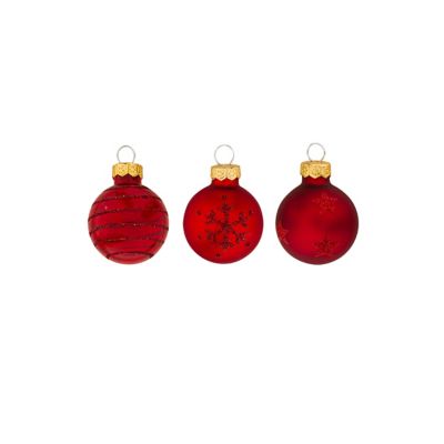 Weihnachtskugeln aus Glas, Farbe: marsala, mit Glitzerverzierungen, Größe: 3 cm Ø, Inhalt: 6 Stück matt und 3 Stück glänzend = 9 Stück.