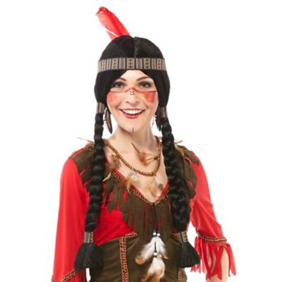 Zopf-Perücke "rote Feder" – und im Nu verwandeln Sie sich in eine waschechte Indianerfrau und sind bereit für die großen und kleinen Abenteuer im Wilden Westen.